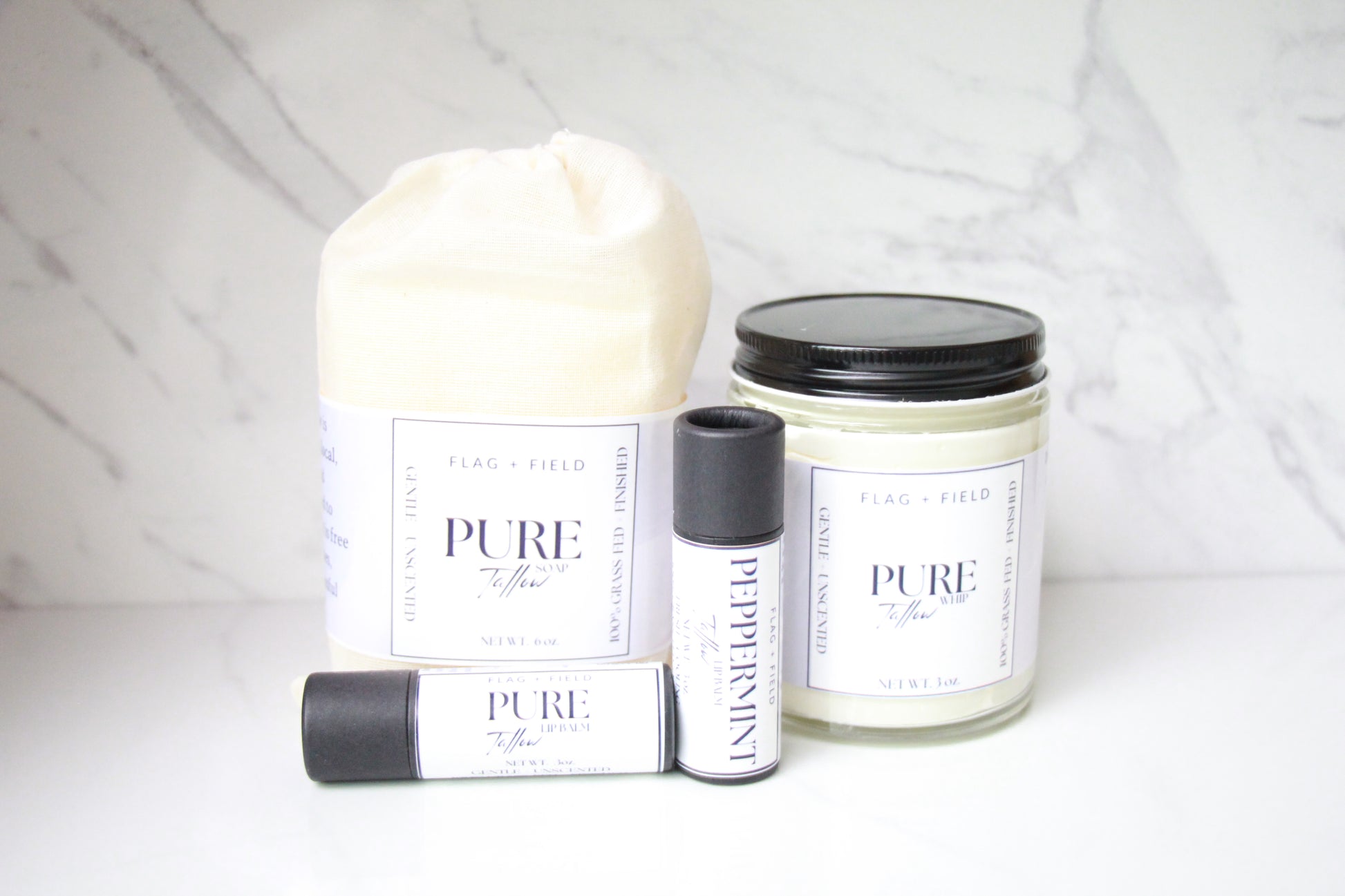 Discover the ultimate skincare experience with our Big Bundle, thoughtfully curated to provide your skin with deep hydration, soothing nourishment, and natural protection. Packed with the power of nutrient-rich tallow, this bundle includes four luxurious essentials from our tallow line of products — Pure Tallow Soap, Pure Tallow Lip Balm, Peppermint Lip Balm and Pure Whipped Tallow—designed to work harmoniously for radiant, healthy skin from head to toe.