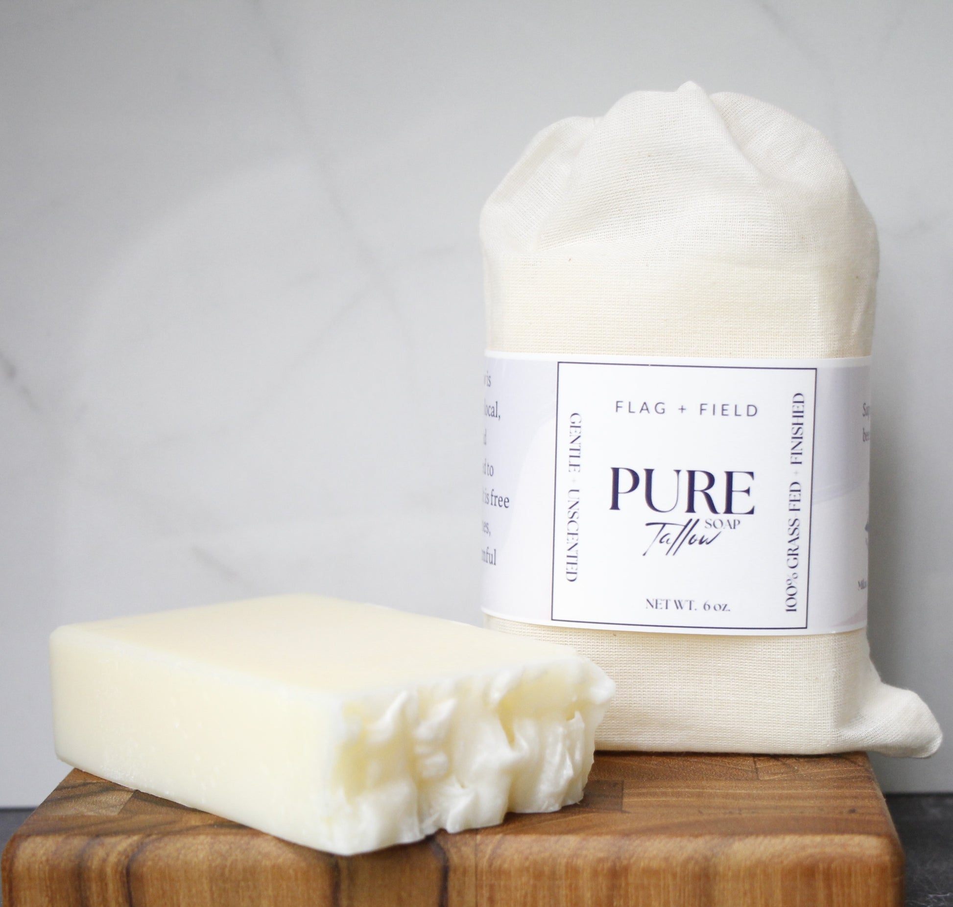 Ingredients: Saponified 100% grass-fed + finished beef suet tallow, virgin cold-pressed coconut oil*^, castor oil*^