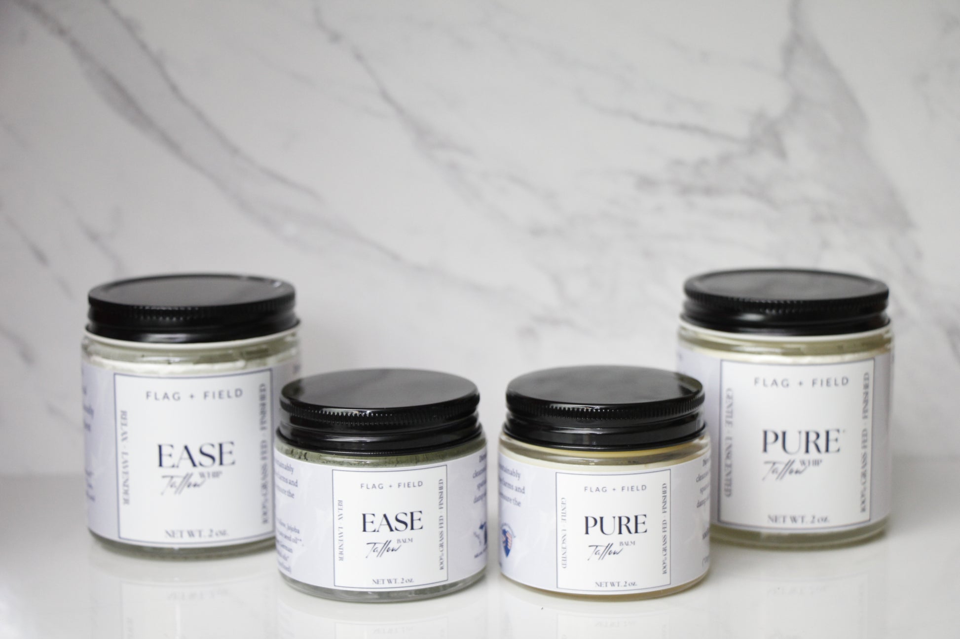 All of our tallow balms come with base of two main ingredients: grass-fed, grass-finished tallow and jojoba oil.
