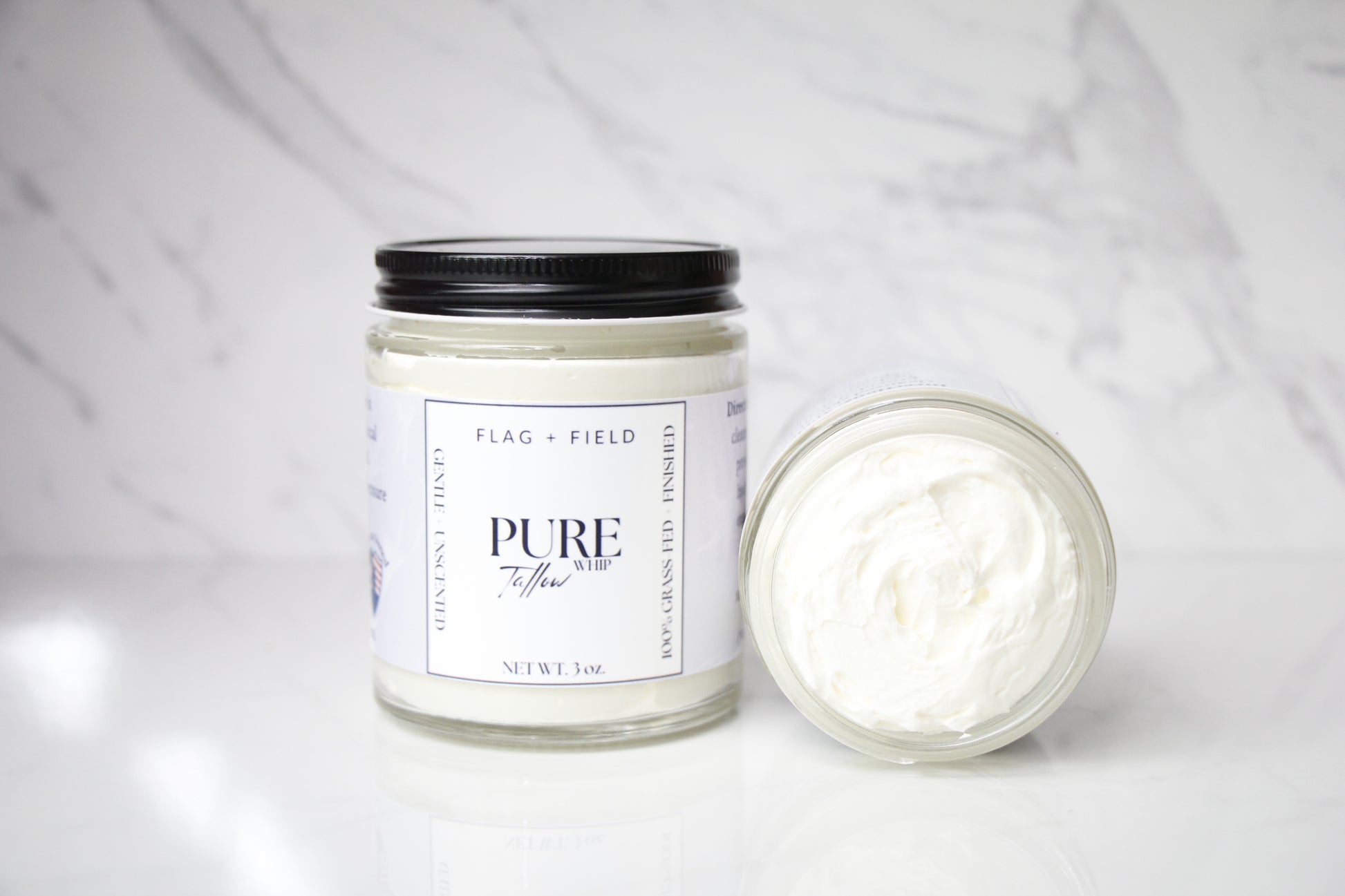Massage a small amount of whip tallow onto clean, damp skin, focusing on areas that need extra moisture. Use as often as needed to keep your skin feeling nourished and replenished. *external use only*